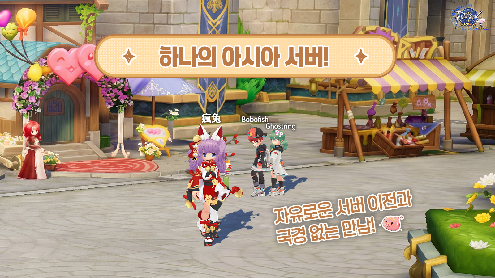 프론테라에서 전 세계 친구들을 만나고, 서버만 이동하면 이국적인 분위기를 체험할 수 있는... 라그나로크 오리진 클래식이 라그나로크 최초로 아시아 통합 서버를 오픈합니다! 이곳에서 지리적 거리는 더 이상 걸림돌이 되지 않습니다. 여러 지역을 자유롭게 오가며 언어의 장벽을 넘고, 이국적인 낭만을 만끽해 보세요. 한국, 대만·홍콩·마카오 지역, 그리고 동남아시아의 모험가님들이 모두 미드가르드에 모여, 아시아 전체가 여러분의 무대가 됩니다.